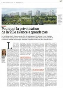 Le journal économique La Tribune publie aujourd’hui notre analyse sur la « privatisation » de la ville et les recompositions de la chaîne de l’immobilier (téléchargeable ici). Nous y défendons trois idées : 1) Même si le terme de « privatisation de la ville » est à la mode, ce à quoi on assiste, ce n’est pas tant à un remplacement de l’acteur public par l’acteur privé, qu’à l’émergence de relations plus partenariales entre aménageurs et promoteurs. 2) Ces nouvelles manières de faire dessinent une image saisissante où… > Lire la suite