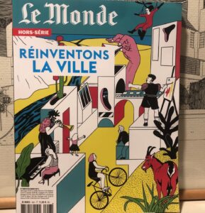 A signaler : le joli hors-série que publie Le Monde : « Réinventons la ville ». Entre autres articles, on signale notamment un article sur la rue (de Danielle Tartakowski), un autre sur le ciment en Afrique (d’Armelle Choplin), un autre sur Jane Jacobs, et un autre sur Google Maps, de Cathy Rémy, qui cite joliment notre article dans Futuribles.