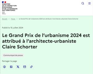 Toutes mes plus vives félicitations à Claire Schorter pour avoir été désignée comme lauréate du Grand Prix de l’Urbanisme 2024 ! La nouvelle était connue des nominées depuis le jury du 13 juin, mais elle est officielle aujourd’hui. Ainsi que l’indique le communiqué de presse : Créé en 1989, le Grand Prix de l’urbanisme distingue chaque année une personnalité reconnue par un jury international. Il valorise l’action des professionnels qui contribuent à faire avancer la discipline et à améliorer le… > Lire la suite