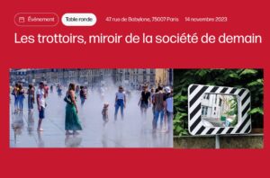 « Pour lire l’avenir des villes, regardez les #trottoirs » ! La table ronde organisée par Futuribles, introduite par François de Jouvenel et et animée par Jean Haëntjens se tiendra le mardi 14 novembre 2023 de 17h30 à 19h00, chez Futuribles pour les membres de l’association et en visio pour tout le monde. « Les usagers historiques du trottoir — piétons, services publics, commerces, cafés et restaurants — doivent désormais compter avec de nouvelles catégories d’occupants, dont les géants du numérique et… > Lire la suite