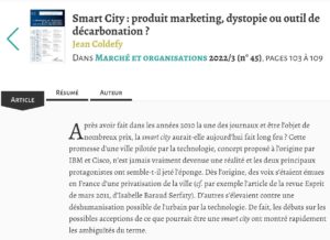 La Revue Marché et Organisations consacre son dernier numéro au renouveau du transport et de la logistique et aux systèmes d’information. Si beaucoup d’articles sont parfois un peu techniques, leur lecture s’avère toutefois fort stimulante. Il faut lire notamment l’article de Jean Coldefy, « Smart City : produit marketing, dystopie ou outil de décarbonation ? », dont nous rejoignons beaucoup l’approche. Extraits (c’est nous qui soulignons) : La smart city des grands groupes américains était une prolongation de leur propre logique… > Lire la suite