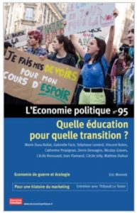 Le dernier numéro de la revue L’Economie politique est consacré à l’enseignement, la transition et l’économie. Forcément, on l’a lu avec intérêt. Quelques extraits. Extrait de l’éditorial « Transmettre pour transformer » de la rédactrice en chef, Sandra Moatti « Nous sommes plusieurs à ne pas vouloir faire mine d’être fiers et méritants à l’issue d’une formation qui pousse globalement à participer aux ravages sociaux et écologiques en cours. Nous ne nous considérons pas comme les talents d’une planète soutenable. » Lors… > Lire la suite