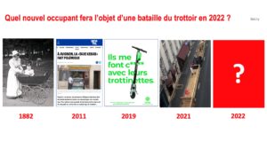 Cela aurait pu être un addendum à notre billet d’hier sur « Les nouveaux défis de l’espace public ». Le trottoir était au coeur des échanges sur le « partage de l’espace public » hier soir dans la salle du conseil de la Mairie de Boulogne-Billancourt. Nous y avons notamment interrogé le maire, Pierre-Christophe Baguet, et ses élus, sur : qui sera le nouvel encombrant du trottoir en 2022 ? N’hésitez-pas à nous envoyer votre réponse par mail à : ibicity@ibicity.fr Pour un retour… > Lire la suite