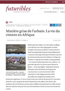 Futuribles publie ce jour notre recension du livre Matière grise de l’urbain. La vie du ciment en Afrique de la géographe Armelle Choplin, que nous avons adoré. La force du livre tient à la capacité de l’auteur à nous démontrer comment interroger la brique et le béton permet de saisir la production de l’urbain en Afrique de l’Ouest. Le ciment est un liant, au sens premier — le ciment lie physiquement eau, sable et / ou granulats (gravier ou pierre)… > Lire la suite
