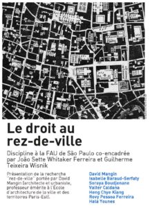Les 10 et 17 mai prochains, à 18H30, sera présentée la recherche « Rez-de-Ville » portée par David Mangin, architecte et urbaniste, professeur émérite à l’École d’architecture de la ville & des territoires Paris-Est. Elle est organisée simultanément par l’Ecole d’architecture, de la ville, et des territoires de Paris Est, et la faculté d’architecture et d’urbanisme de l’Université de Sao Paulo (FAU). À l’initiative de João Sette Whitaker Ferreira et Guilherme Teixeira Wisnik (FAU-São Paulo), ce séminaire d’échanges internationaux s’intéressera à la recherche sur les rez-de-ville… > Lire la suite