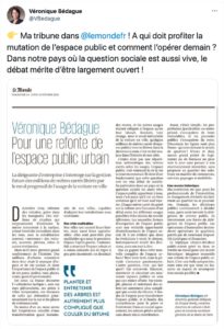 Dans une stimulante tribune dans Le Monde, la directrice générale déléguée de Nexity propose d’ouvrir le débat sur la gestion de l’espace public. Elle écrit notamment : Qui va gagner dans cette nouvelle conquête de l’espace urbain ? Rien n’est écrit, mais la période s’annonce passionnante. L’autre question, c’est : qui fait quoi ? Car concevoir, financer, entretenir et sécuriser ces nouveaux espaces publics ne sera pas une mince affaire. Par exemple, planter et entretenir des arbres est autrement plus compliqué que couler… > Lire la suite