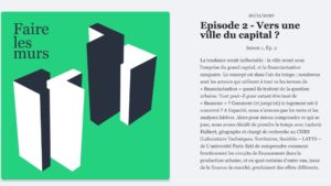 « Faire les murs »est « le podcast d’Espacité, va à la rencontre de celles et ceux qui changent la ville ». On signale en particulier l’épisode 2, « Vers une ville du capital ? », où Ludovic Halbert évoque la financiarisation de la production urbaine. A lire également : « Les mutations de la ville sous contrainte financière ». A signaler : La « financiarisation de la ville » est l’objet de notre capsule 13 de notre chaîne youtube sur les acteurs privés de la ville.