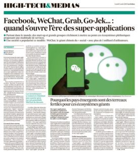 A lire dans les Echos de ce jour deux articles sur l’émergence des super-applications. Extraits 1 : Il est venu le temps des super-applications. Partout dans le monde, émergent ces écosystèmes pléthoriques au sein desquels l’utilisateur peut directement communiquer avec ses connaissances, commander un VTC, réserver chez le coiffeur et même obtenir un prêt parfois. Du tout en un. « La proposition de valeur de ces super-applications repose sur l’agrégation d’une multitude de services via une seule porte d’entrée », note Arnaud… > Lire la suite