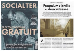 A lire : le dossier « Et si tout devenait gratuit » dans le numéro qui sort ce jour de la revue Socialter. Un peu plus loin dans le numéro, on trouvera également un article de Christelle Granja sur un modèle particulier de gratuité, le freemium, appliqué à la ville. Où il est notamment question de Dunkerque et… de nos travaux. L’article est disponible sur la page Publications de notre site, rubrique « on parle de nous » : ici. L’occasion de relire notre… > Lire la suite