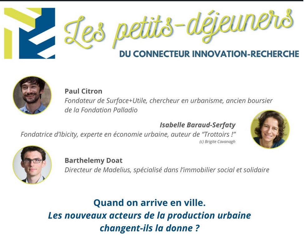 📣 La Fondation Palladio sous l’égide de la Fondation de France organise le 7e petit déjeuner de son Connecteur Innovation-Recherche. 📅 Rendez-vous le 17 octobre prochain dès 9h00 pour débattre et échanger sur le thème » Quand on arrive en ville. Les nouveaux acteurs de la production urbaine changent-ils la donne ? » Etienne Riot, Directeur de l’innovation et de la recherche de PCA-STREAM | Philippe Chiambaretta Architecte et ancien boursier de la Fondation Palladio accueillera : – Paul Citron, Fondateur de Surface+Utile, chercheur en urbanisme,… > Lire la suite