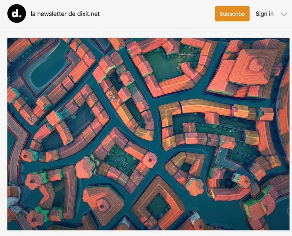 Il y a tellement à lire dans la Newsletter dixit.net de Sylvain Grisot qu’on avoue une certaine fierté à figurer dans le palmarès des articles préférés cette année. Pour lire le bilan d’une année de newsletter dixit.net et participer au jeu « Je dessine une ville », c’est : ici. Et pour lire notre interview et écouter le podcast associé, c’est : là. Merci à l’interviewer !