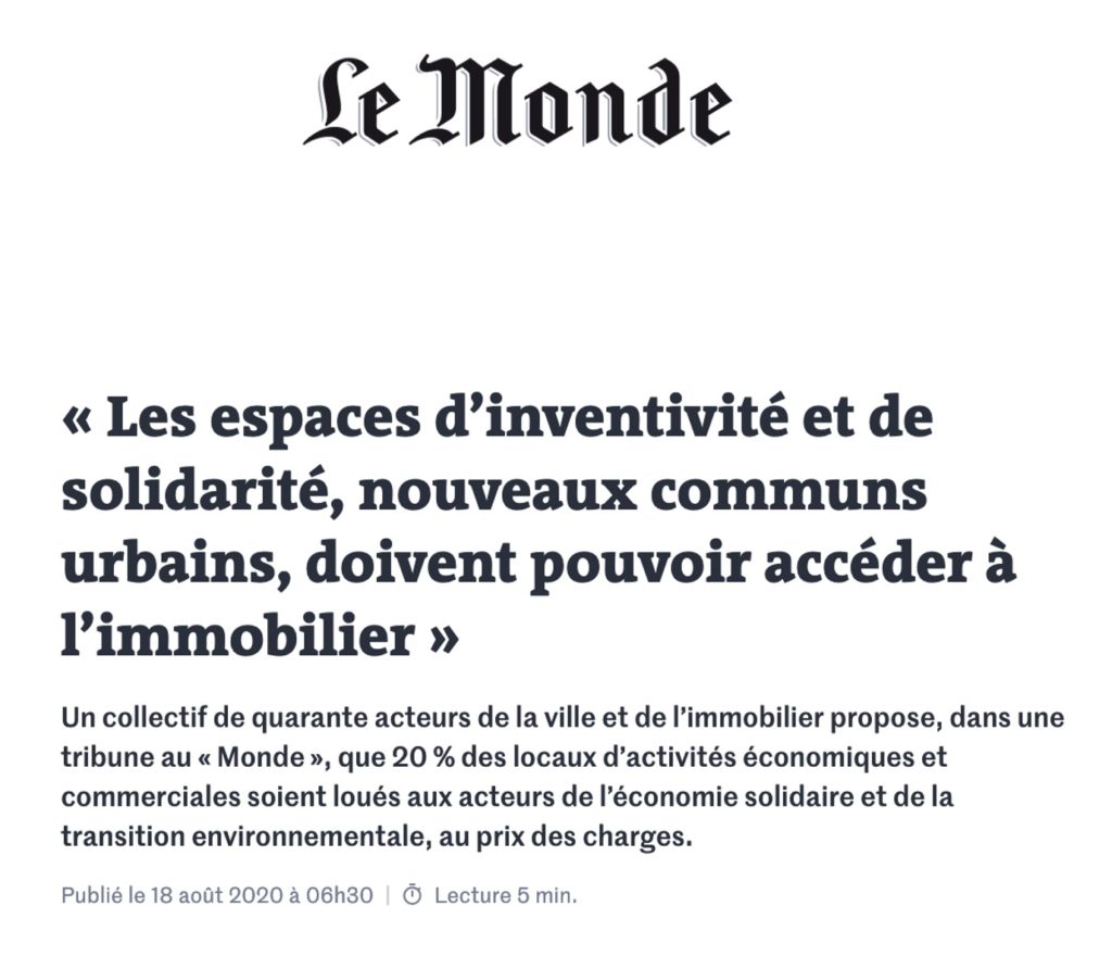 A lire dans le Monde.fr du 18 août une tribune de 40 signataires (dont ibicity) du monde de l’immobilier et de l’urbanisme pour donner aux acteurs de la solidarité, de la culture, de la santé, de l’éducation, de l’ESS et de la transition écologique un accès privilégié aux espaces urbains et immobiliers. Dans le cœur des métropoles comme dans les petites villes, de nombreux lieux apparaissent aujourd’hui comme des têtes de pont de la gestion quotidienne des urgences sociales. La… > Lire la suite