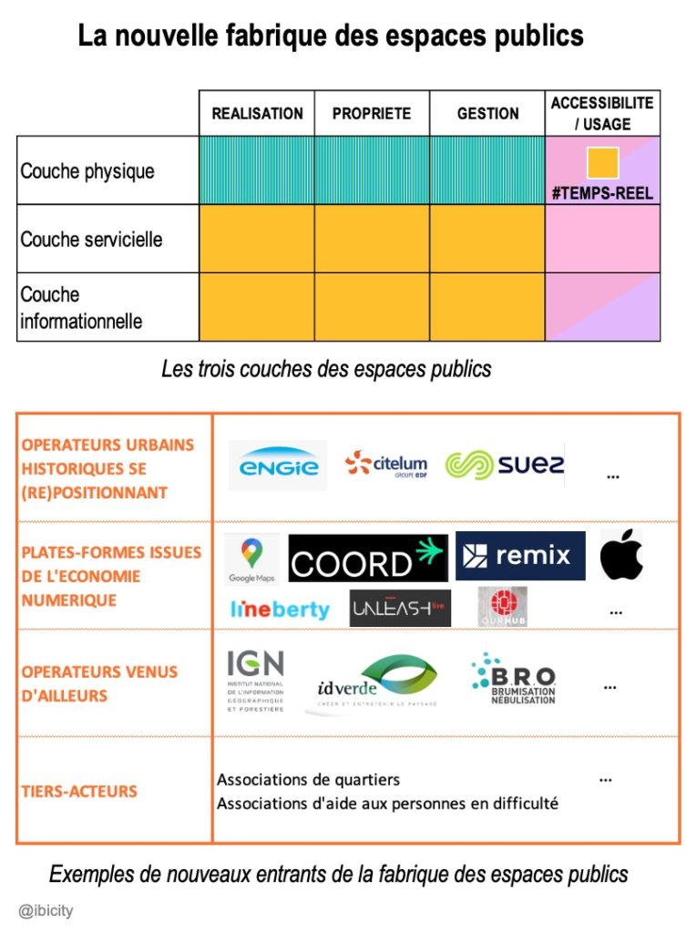 Le Réseau National des Aménageurs vient de mettre en ligne notre note sur « la nouvelle fabrique des espaces publics ». Celle-ci est téléchargeable ici ou sur le site du RNA. Cette note propose une grille d’analyse des changements à l’oeuvre dans la fabrique des espaces publics. Elle montre notamment comment deux nouvelles « couches » viennent s’ajouter à la « couche physique » traditionnelle. D’une part, la « couche servicielle » se développe avec des installations sur l’espace public qui « rendent des services », notamment aux… > Lire la suite