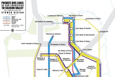 La Vie des Idées, dans un passionnant article de Florian Opillard, revient sur les bus privés de San Francisco, ceux qui sont affrétés par les grandes compagnies du secteur technologique et qui font largement polémique. (source image : ici) Extraits : Cette image, c’est celle du blocage d’un bus Google par le groupe militant de San Francisco nommé Heart of the city collective, qui s’efforce d’intervenir dans l’espace public pour contester le désormais connu programme de private shuttles dans la ville de… > Lire la suite