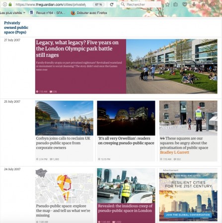 Le quotidien britannique The Guardian a poursuivi cet été son alerte sur la privatisation des villes, notamment anglaises. Son combat remonte à 2012, avec la publication du livre d’Anna Minton, Ground Control. Cette fois-ci, The Guardian va plus loin en démarrant une cartographie des POPS à Londres. Les POPS, ou « Privately owned public spaces » sont des espaces qui ont l’air public mais qui appartiennent à des propriétaires privés. Le quotidien britannique les qualifie également de « pseudo-public-spaces ». Légende : ici. A noter que les numéros… > Lire la suite